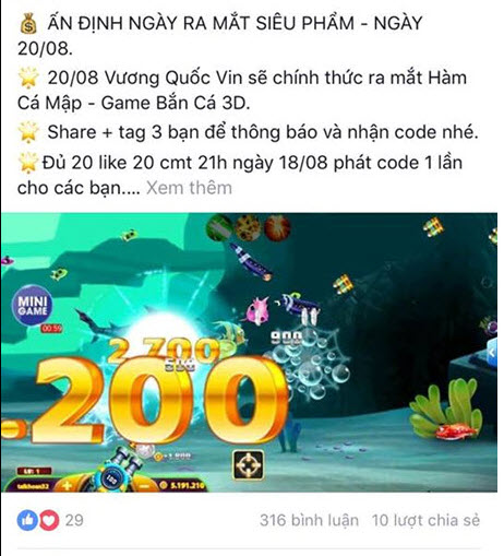 Hiện tại trên thị trường game Việt đang cũng có một số sản phẩm game bắn cá, tuy nhiên hình ảnh màu sắc chưa thật sự hài lòng người chơi. Và khi thông tin VinPlay phát hành game bắn cá với hình ảnh 3D sống động đã nhanh chóng thu hút sự quan tâm của nhiều fan hâm mộ